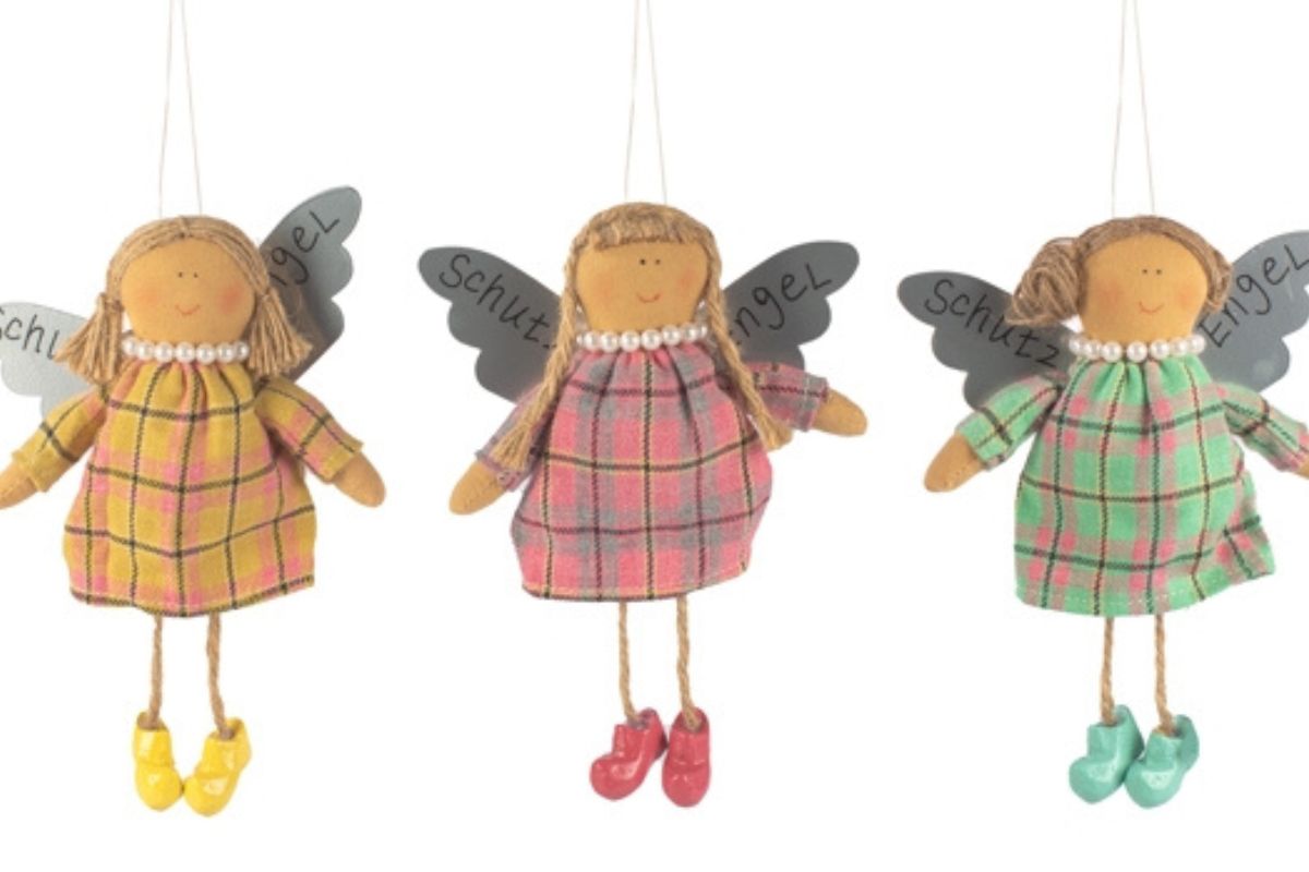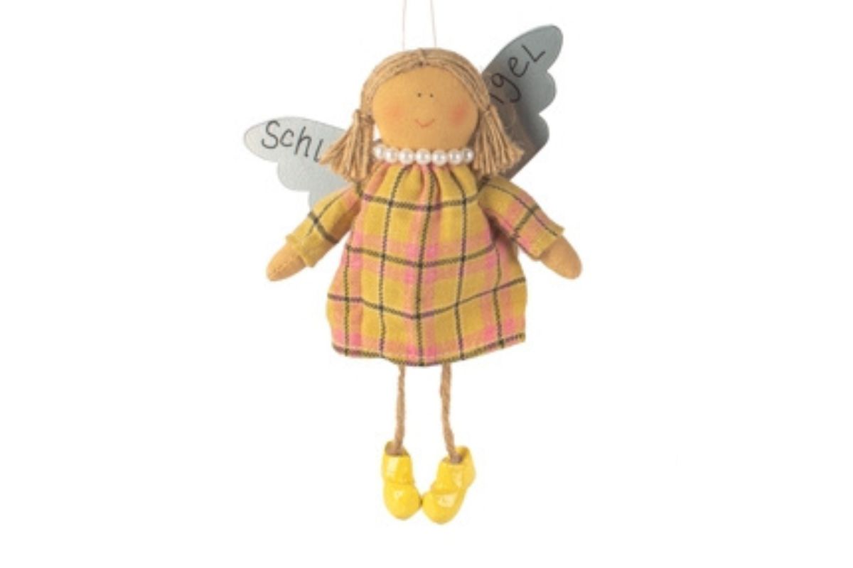 ∗Design: Baden Schutzengel Aufhänger Deko Engel im Stoffkleidchen Gelb Kariert