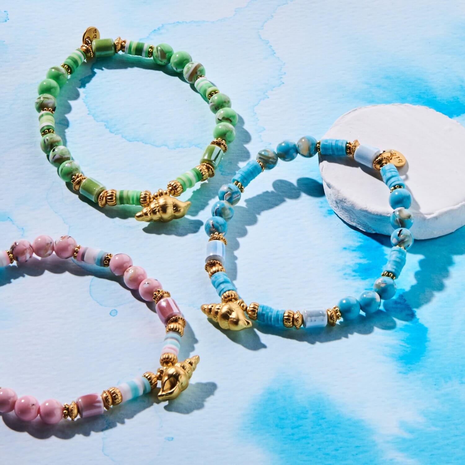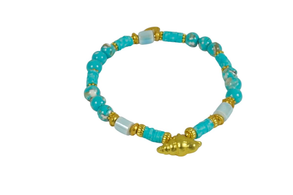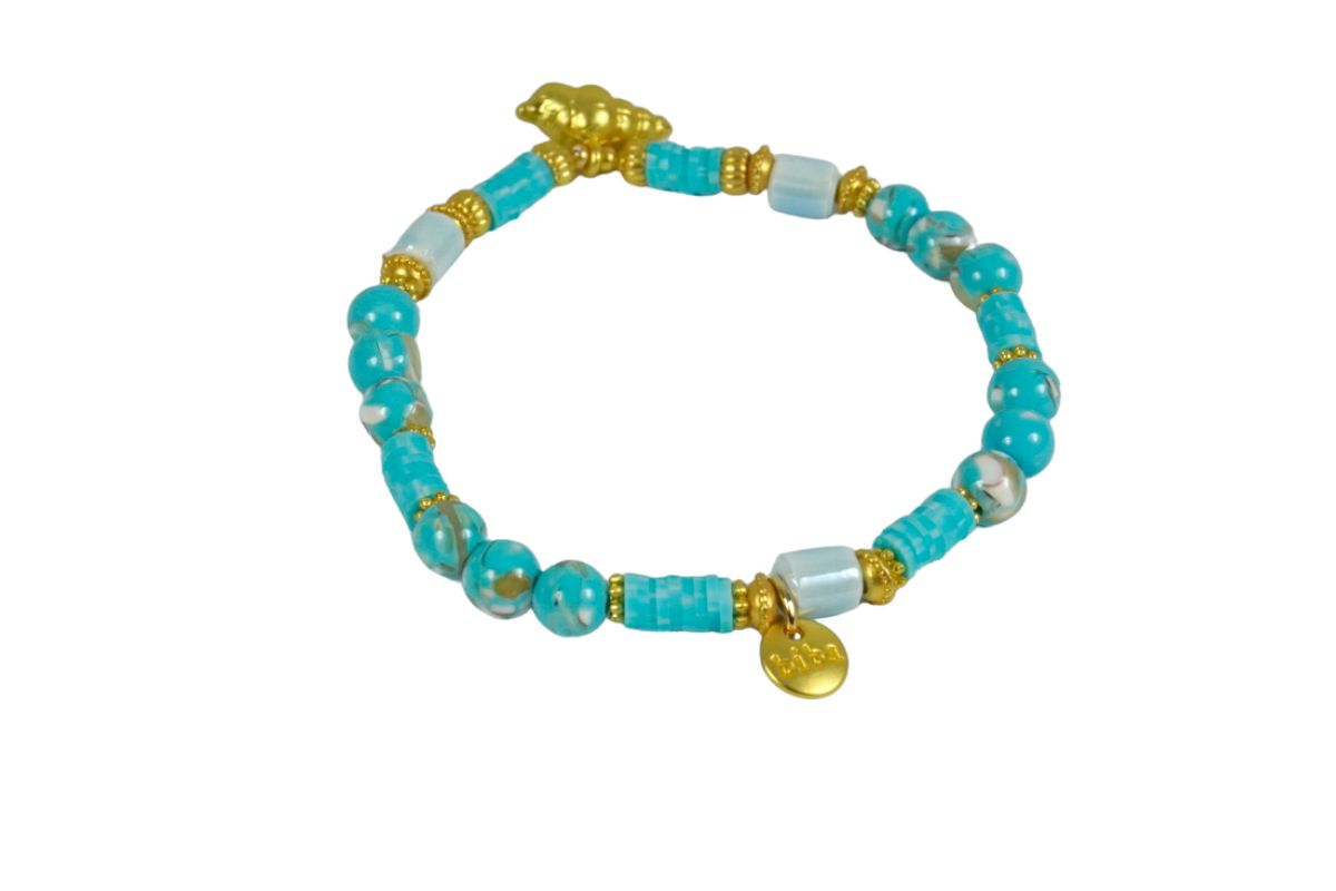 Biba Armband Gold Muschel Türkis Damen Armband Gold Anhänger