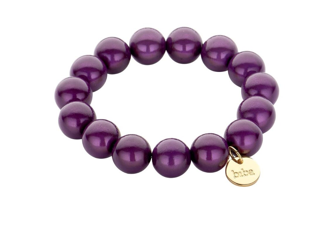 Biba Armband Polymer Perlen Dunkellila 14mm Ø Damen Armband Gold Anhänger