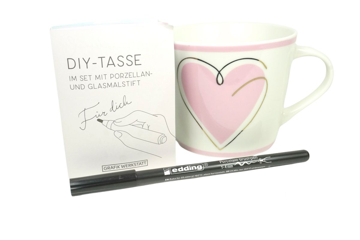 Grafik Werkstatt Henkelbecher Kaffeebecher DIY Tasse Herz Mal mich fertig