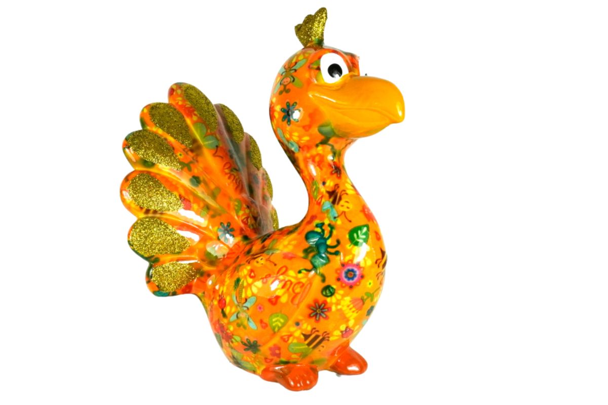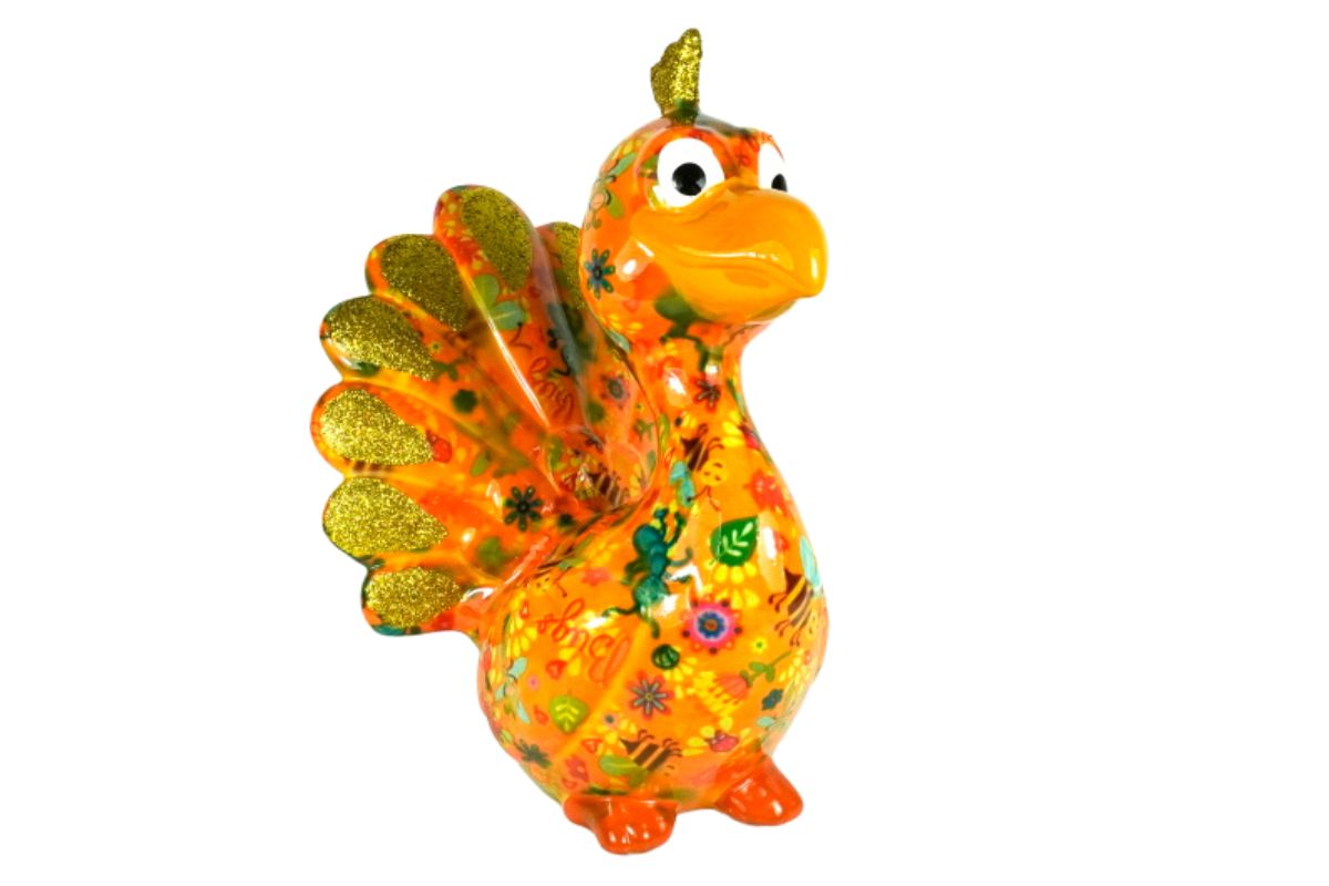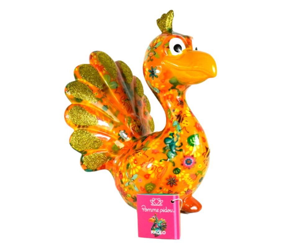 Pomme Pidou Spardose Money Bank Pfau Paolo Orange Bugs Gold