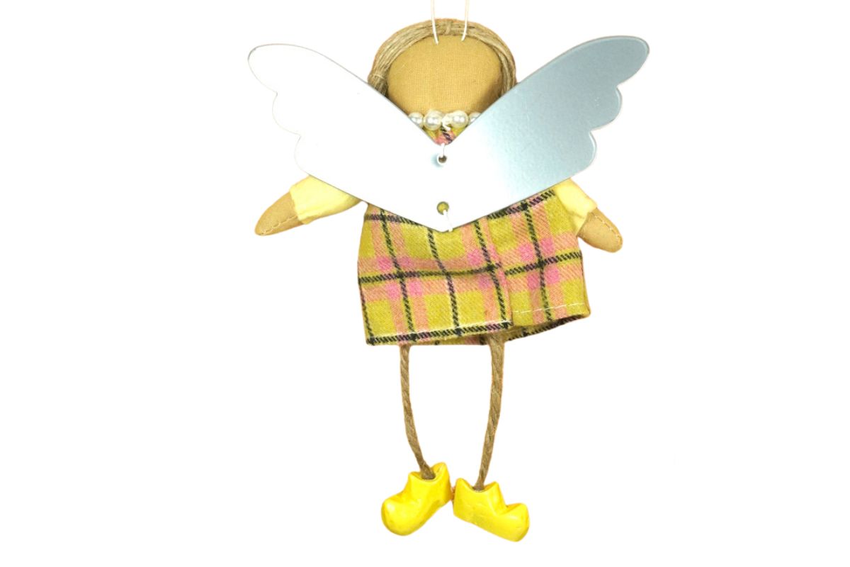 ∗Design: Baden Schutzengel Aufhänger Deko Engel im Stoffkleidchen Gelb Kariert