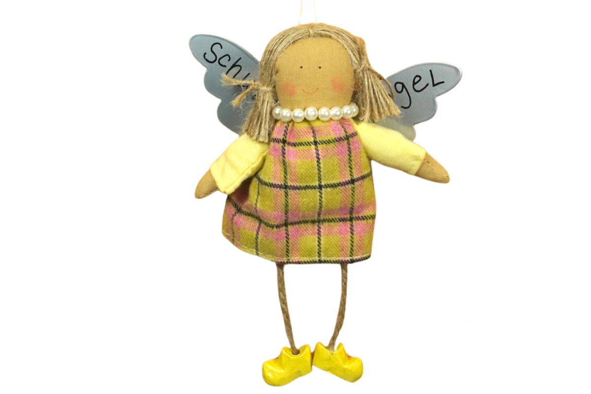 Baden Schutzengel Aufhänger Deko Engel im Stoffkleidchen Gelb Kariert