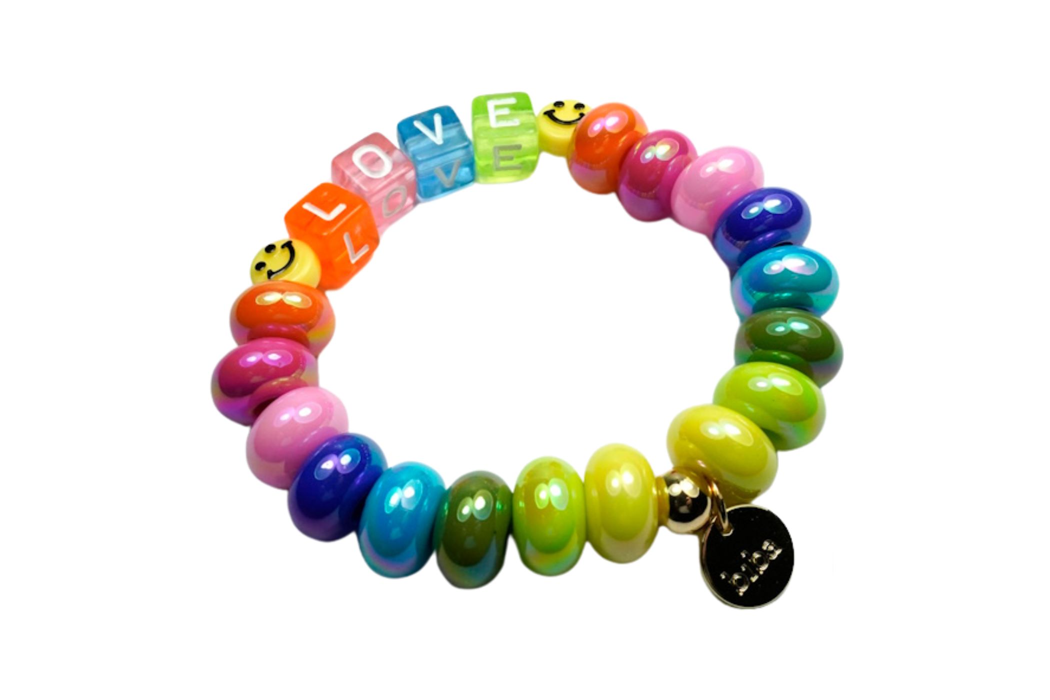 *Design: Biba Armband Großloch Polymer Perlen Love 14mm Damen Armband Anhänger Gold