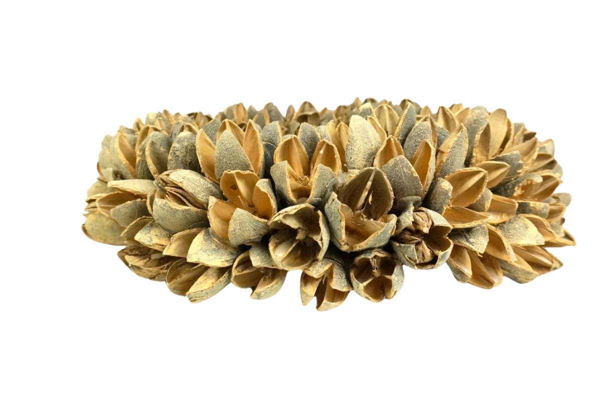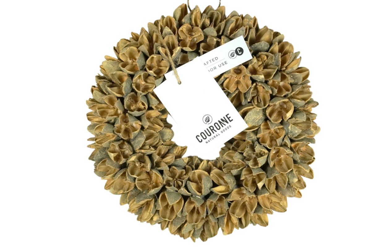 Verleihen Sie Ihrem Zuhause mit unserem Couronne Deko Kranz mit Bakuli Fruits eine zeitlose Schönheit und begrüßen Sie Ihre Gäste mit einem Hauch von natürlicher Eleganz. Gönnen Sie sich jetzt dieses einzigartige Stück Natur und lassen Sie Ihr Zuhause erblühen. Zum Aufhängen findest du an jedem Couronne Kranz einen Metallring.