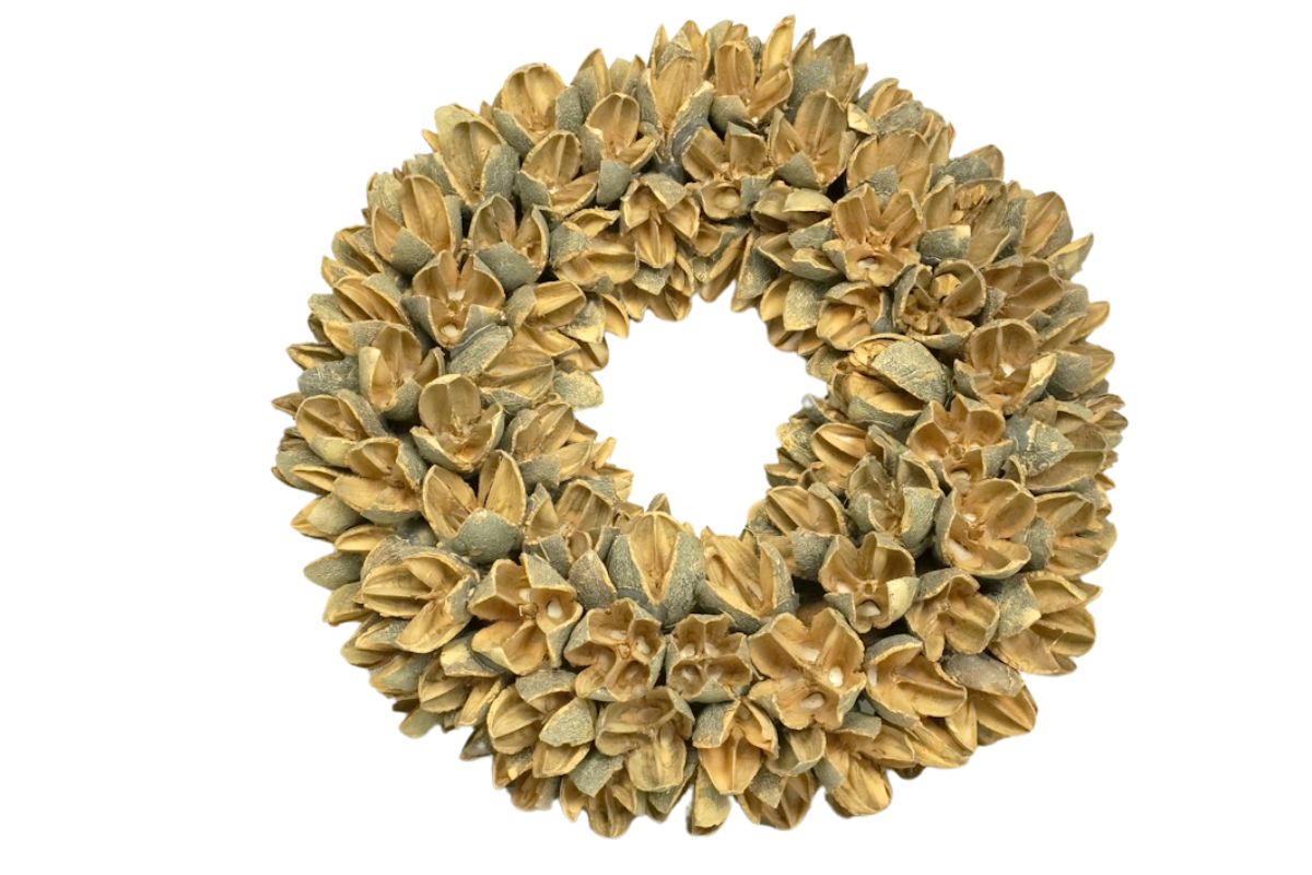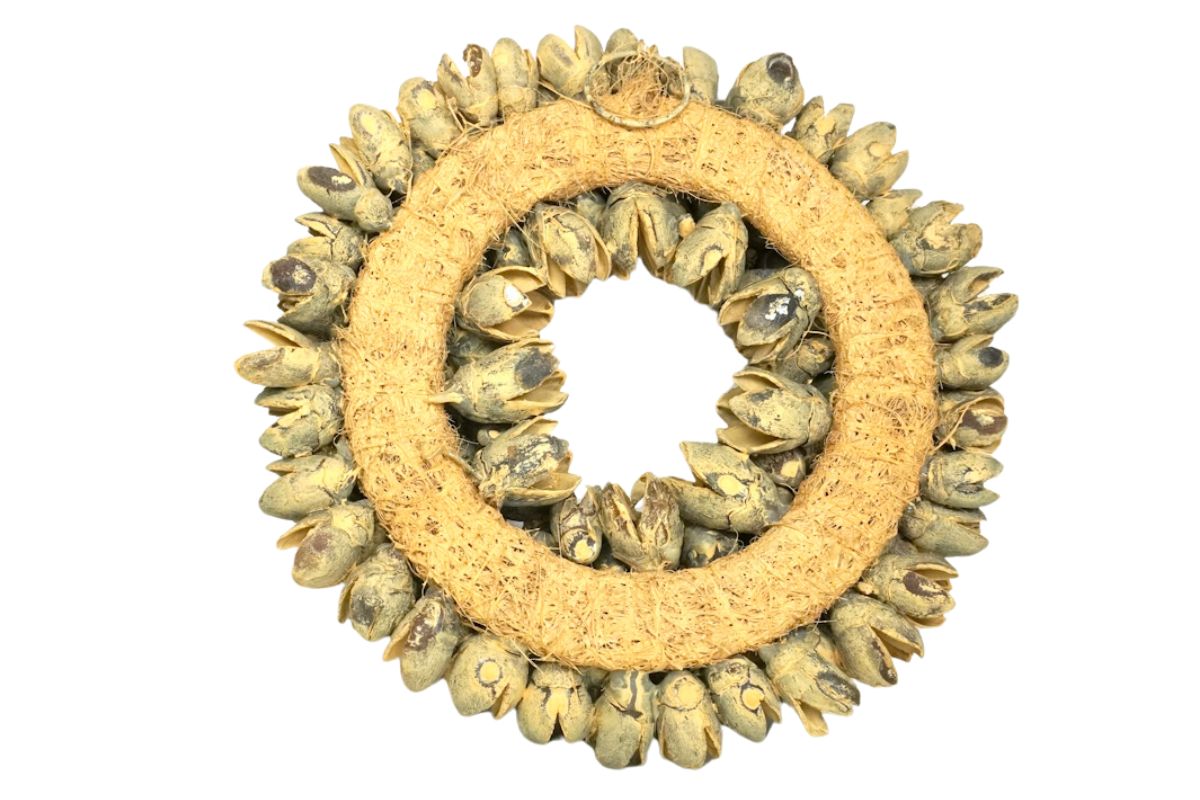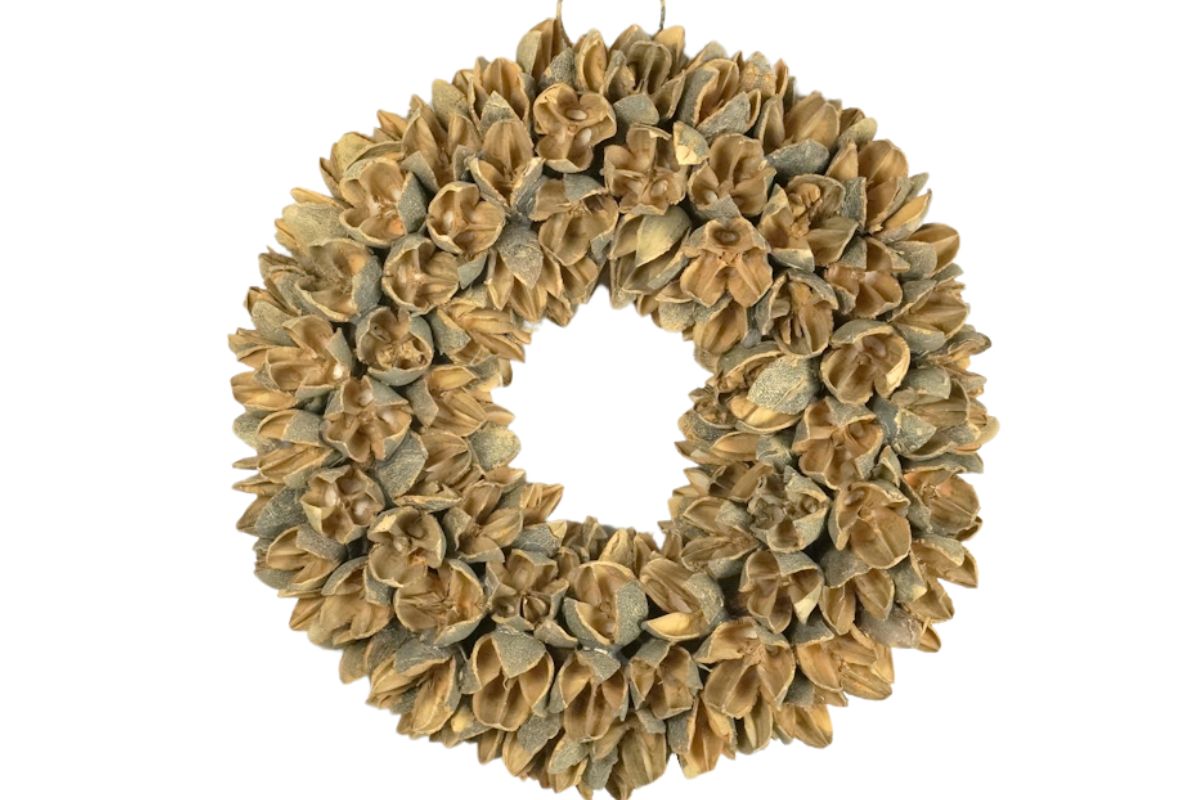 Die zarten Bakuli Fruits verleihen diesem Kranz eine sanfte Textur und eine natürliche Ausstrahlung, die jeden Raum in ein gemütliches Heim verwandelt. Ob an der Haustür, über dem Kamin oder als Mittelpunkt auf Ihrem Esstisch – dieser Kranz ist das perfekte Accessoire, um Ihren Wohnbereich auf stilvolle Weise zu verschönern.