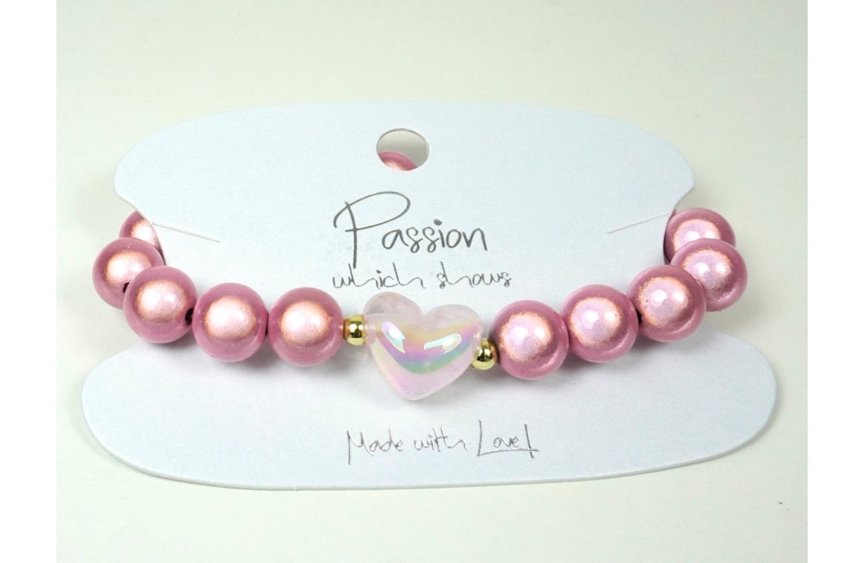 *Design: Damen Armband Magic Beads Herz Rosa Perlen Modeschmuck Armband