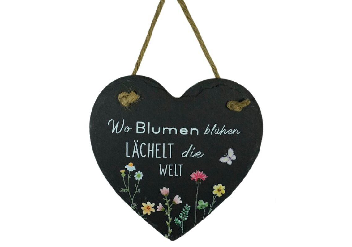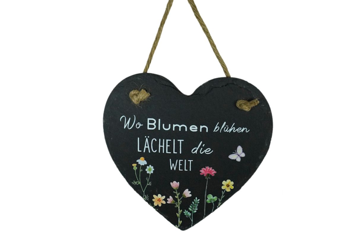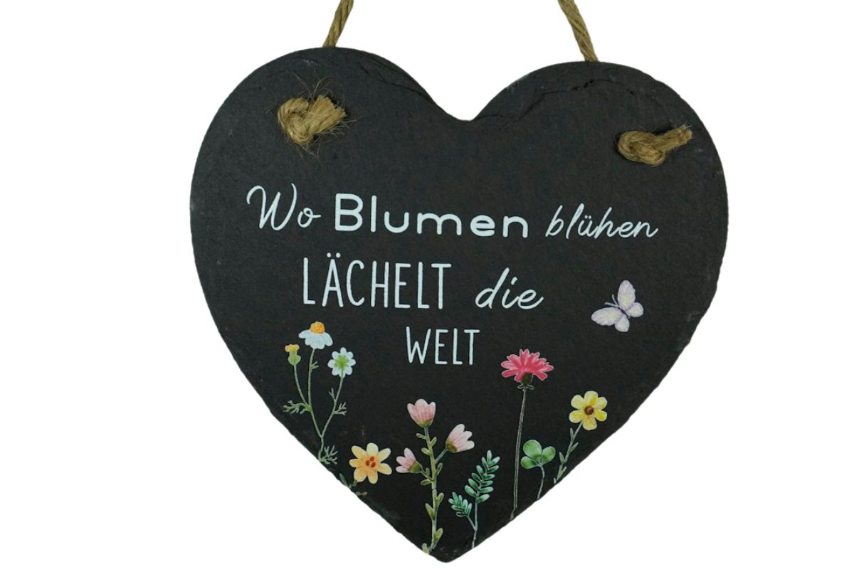 Design: Deko Schieferschild Aufhänger Wo Blumen blühen Lächelt die Welt