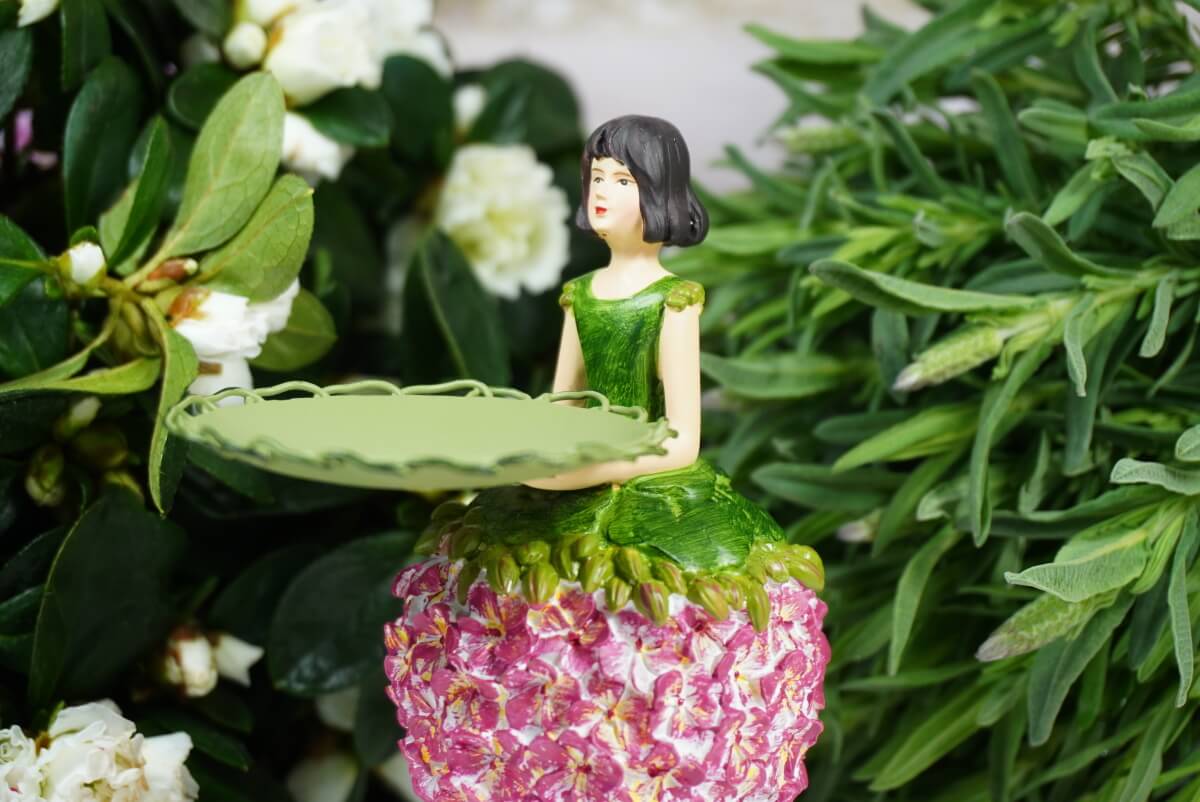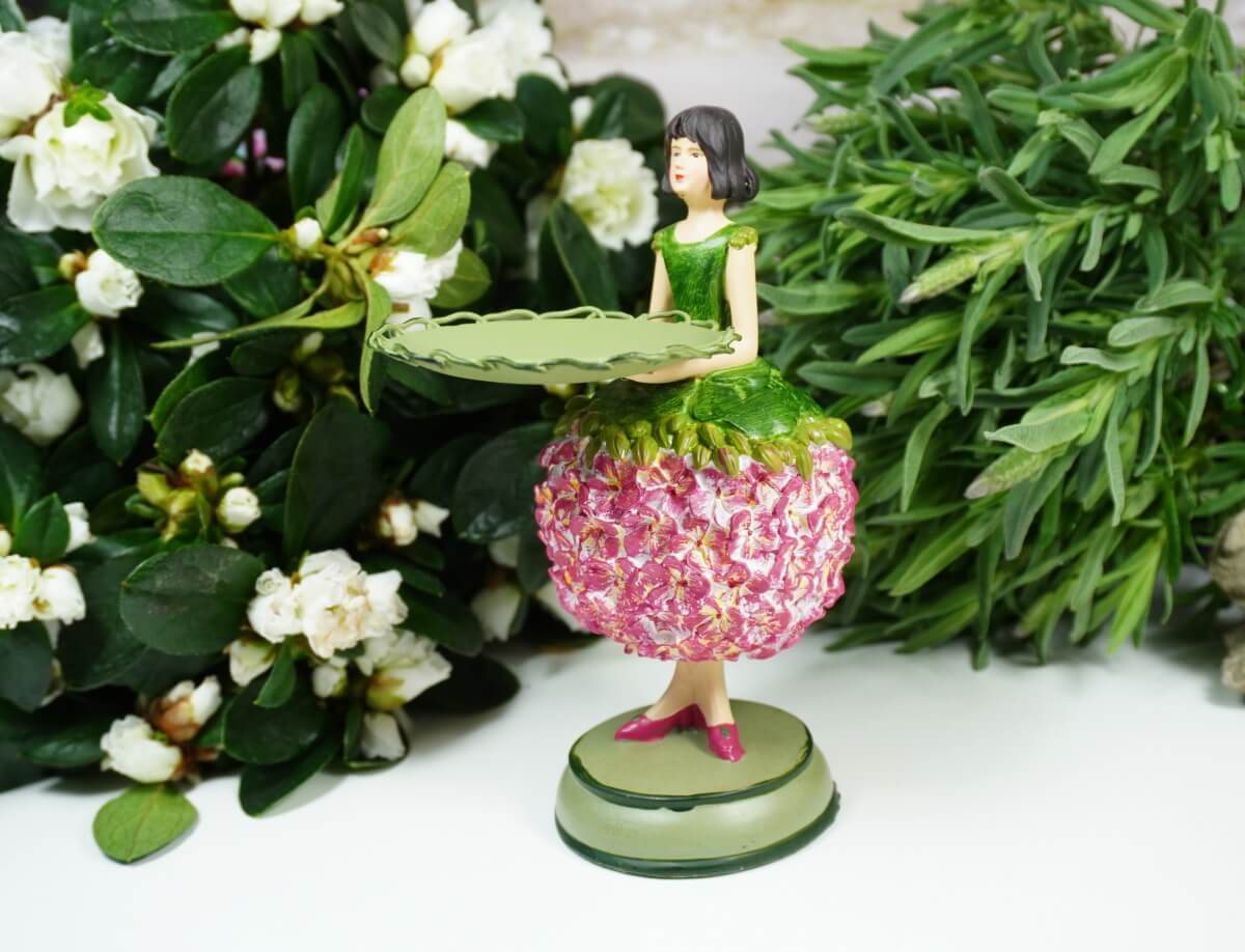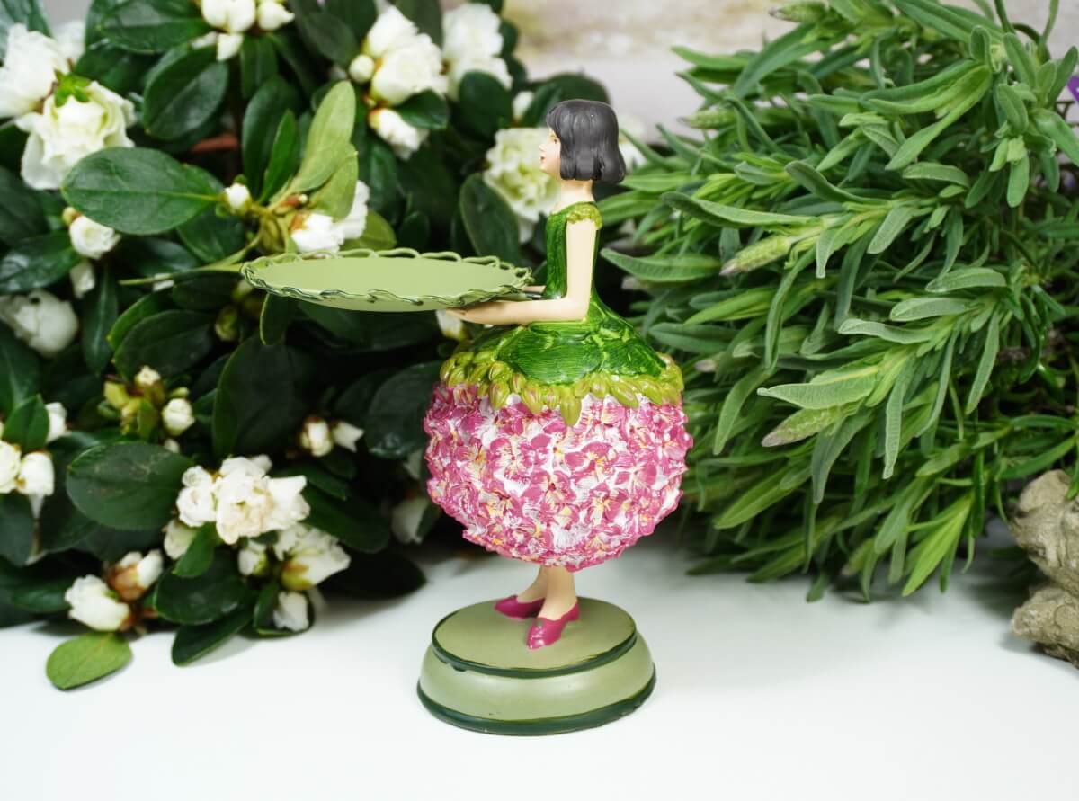 Dekofigur Teelichthalter Blumenmädchen Blütenfee Geranien