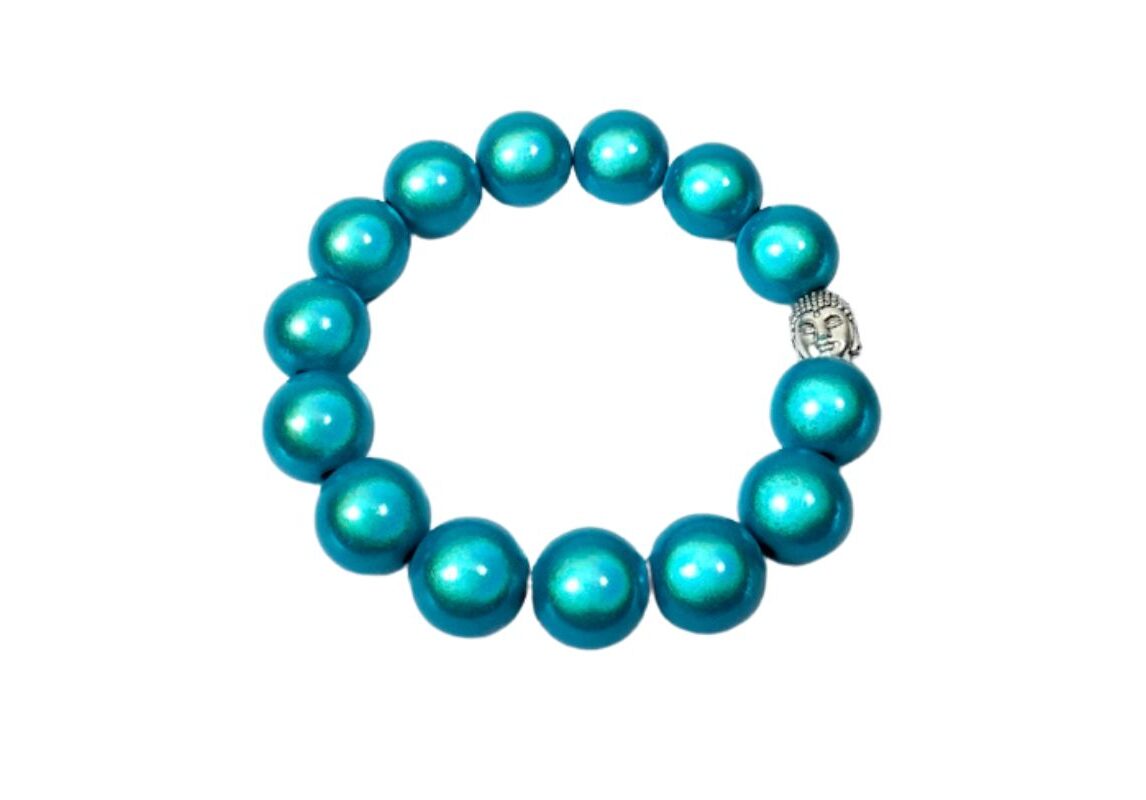 Impala Damen Armband Big Magic Buddha Kopf Polymer Perlen Blautürkis 14mm Ø