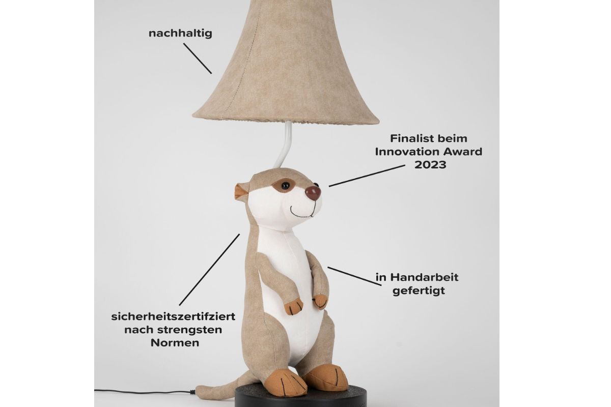 Handgefertigt mit Liebe Jedes Detail von „Eddie das Erdmännchen“ ist sorgfältig von Hand gearbeitet und macht jede Lampe zu einem Unikat.