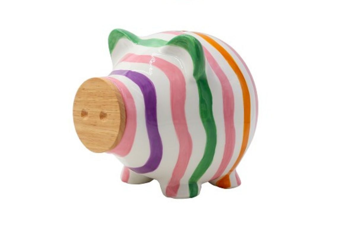 Pomme Pidou Spardose Money Bank M Schwein Piggy mit Holz Bunte Ringe